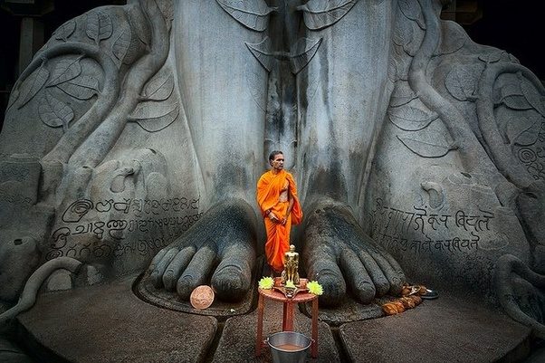 The Navkar Mantra is the most important mantra in Jainism and can be recited at any time. While reciting the Navkar Mantra, we are bowing down with respect to Arihantas (souls who have reached the state of non-attachment towards worldly process), Siddhas (liberated souls), Ächäryäs (heads of sadhus and sadhvis), Upädhyäyas (those who teach scriptures to sadhus and sadhvis), Sädhus (monks, who have voluntarily given up social, economical and family relationships) and Sädhvis (nuns, who have voluntarily given up social, economical and family relationships). Collectively, they are called Panch Parmesthi (five supreme spiritual people). In this mantra we worship their virtues rather than worshipping any one particular person; therefore, this Mantra is not named after Lord Mahavir, Lord Parshvanath or Adinath, etc. When we recite Navkar Mantra it, also reminds us that, we need to be like them. This mantra is also called Namaskär or Namokär Mantra because we are bowing down. The Navkär Mantra contains the main message of Jainism. The message is very clear. If we want to be liberated from this world then we have to take the first step of renunciation by becoming a monk or a nun. This is the beginning. If we stay on the right path then we will proceed to a higher state, Arihant, and ultimately proceed to Siddha after nirvana (liberation from the cycle of birth and death). The goal of every Jain is, or should be, to become a siddha.